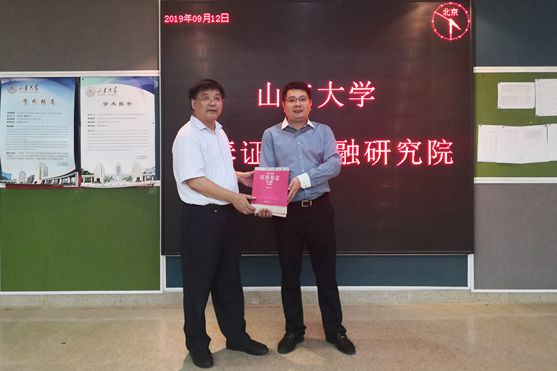 9月12日开学之际,山东大学优秀校友胡安泰为母校赠送《中国私募基金年鉴》,该年鉴由我校校友胡安泰主编,编委会由私募基金生态圈内顶级公司高管以及来自北京大学、清华大学、人民大学,山东大学、中央财经大学、中山大学、上海大学等顶级学府的专家教授组成,山东大学中泰证券金融研究院石玉峰教授受邀作为编委之一参与编写。山东大学中泰证券金融研究院陈增敬院长代表我校进行受赠并将其陈列到我校图书馆,欢迎大家阅读。陈院长对校友胡安泰表示祝贺和感谢,祝《中国私募基金年鉴》越办越好。