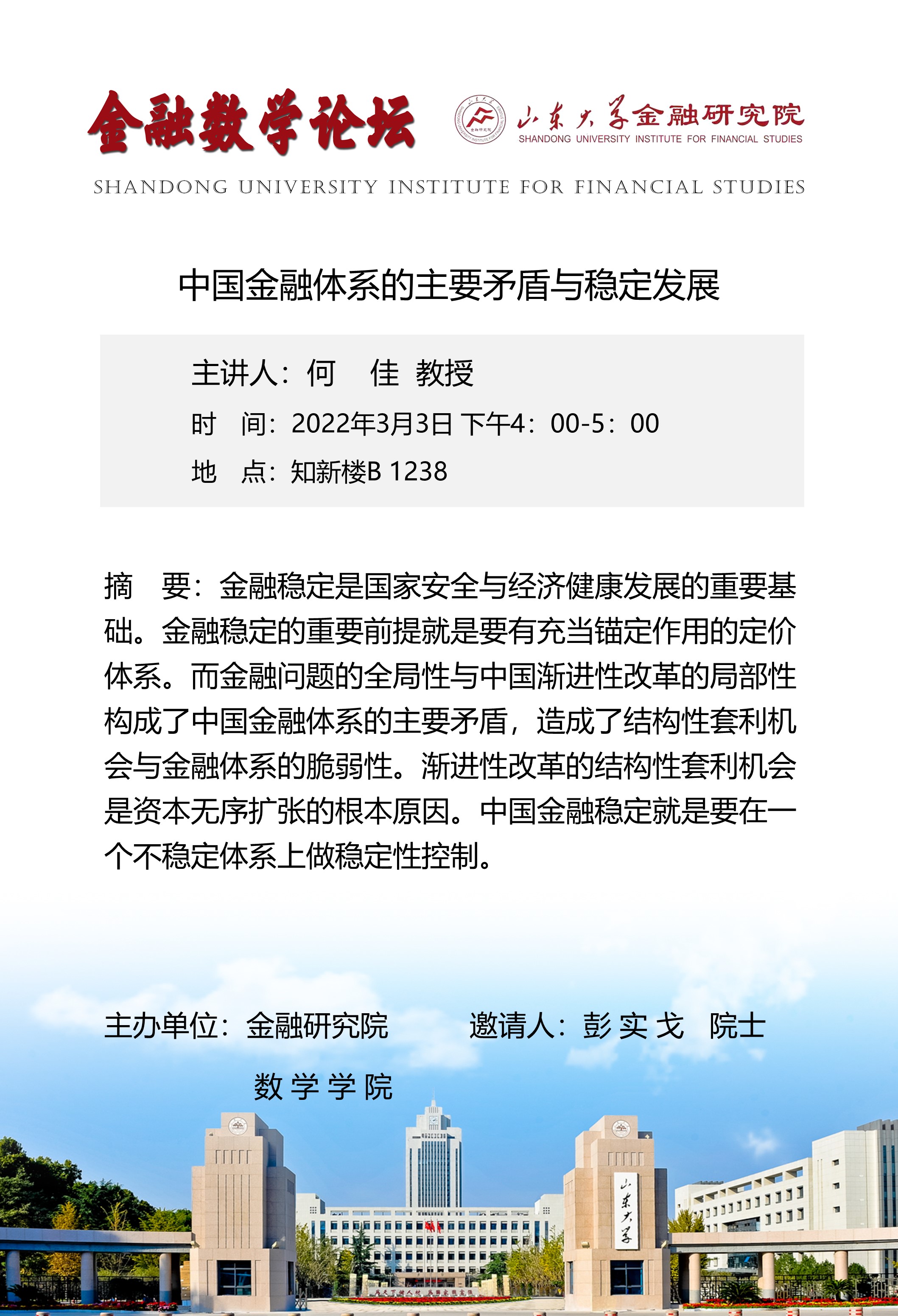 报告题目: 中国金融体系的主要矛盾与稳定发展