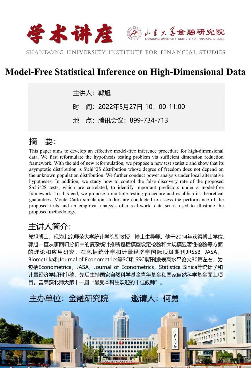 报告题目:Model-Free Statistical Inference on High-Dimensional Data