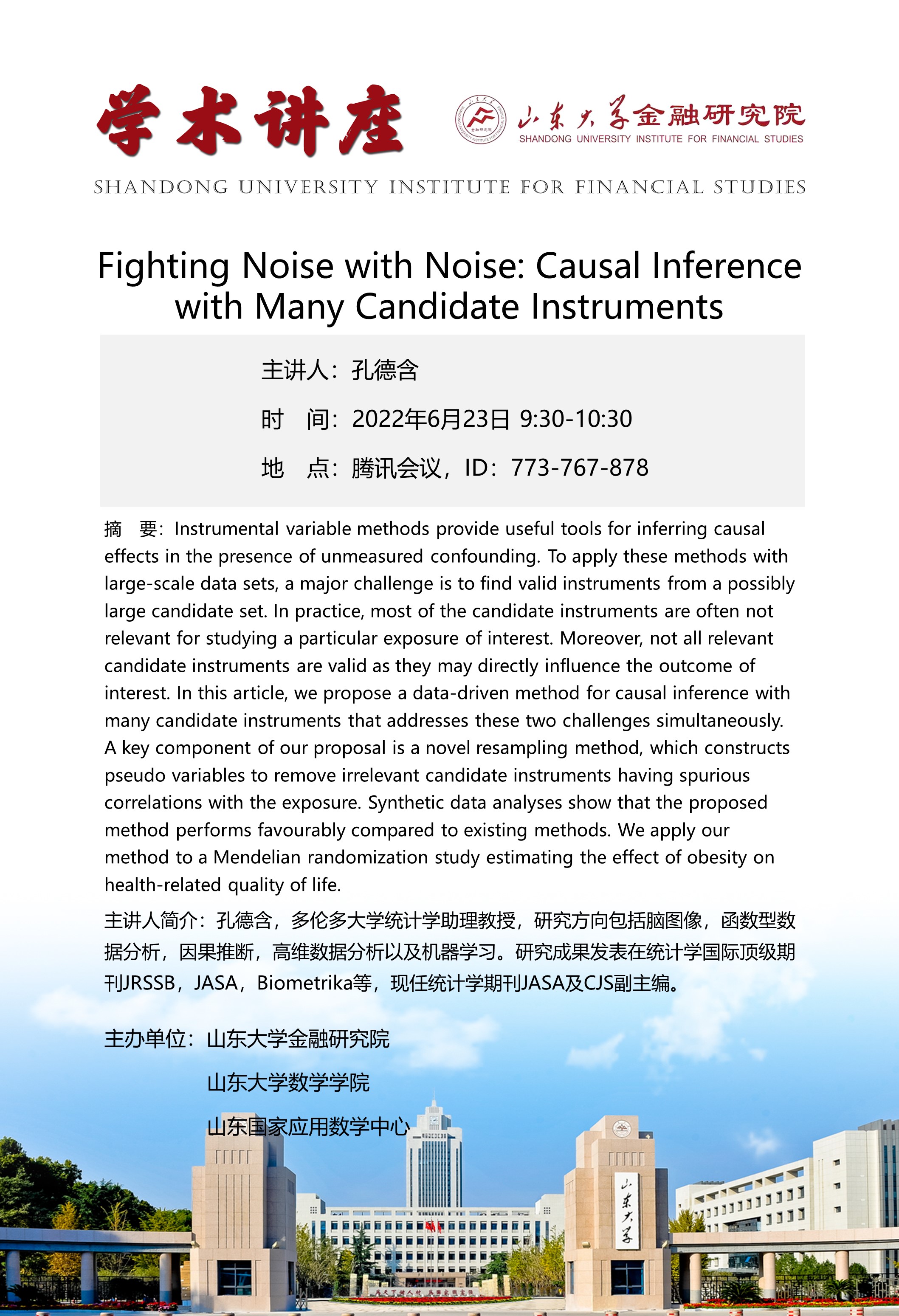 报告题目: Fighting Noise with Noise: Causal Inference with Many Candidate Instruments