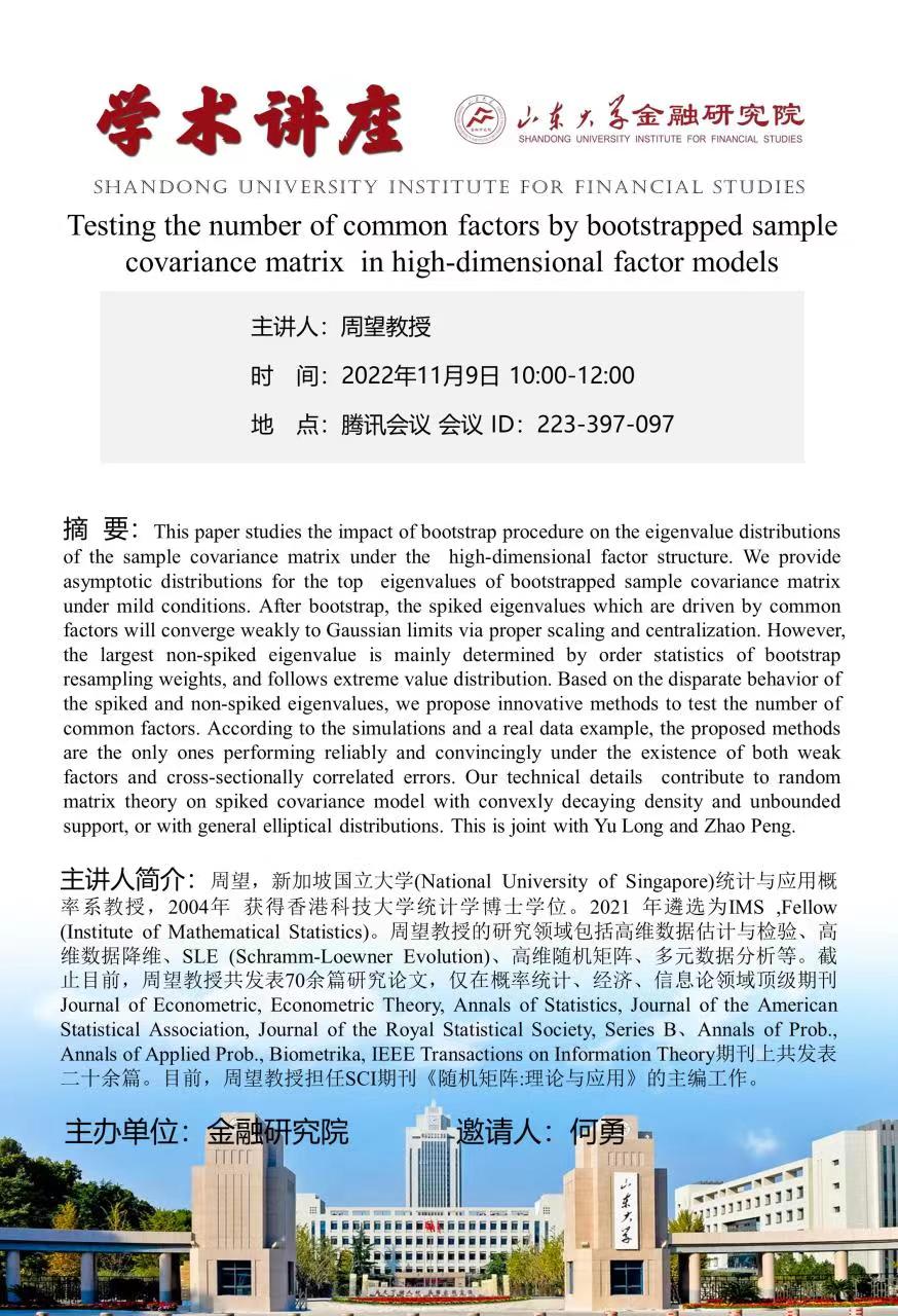 报告题目:Testing the number of common factors by bootstrapped sample covariance matrix in high-dimensional factor models