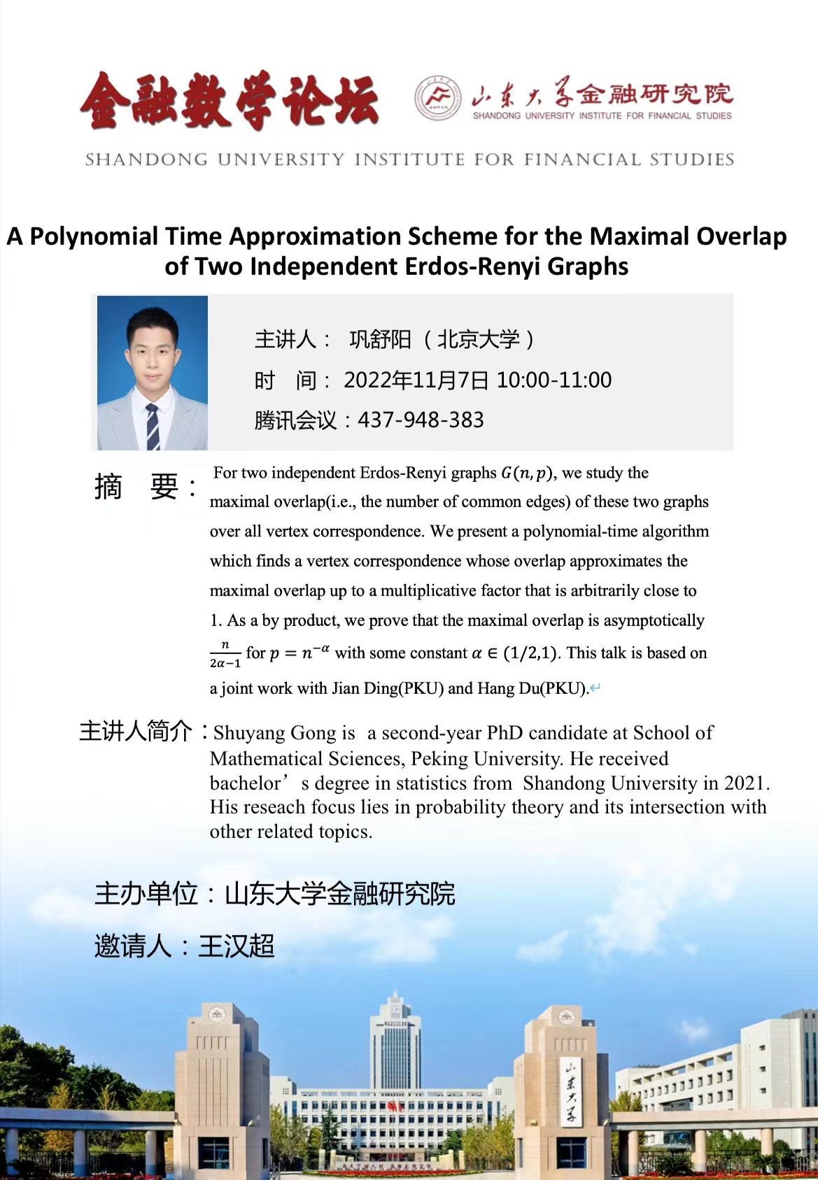 报告题目:A Polynomial Time Approximation Scheme for the Maximal Overlap of Two Independent Erdos-Renyi Graphs