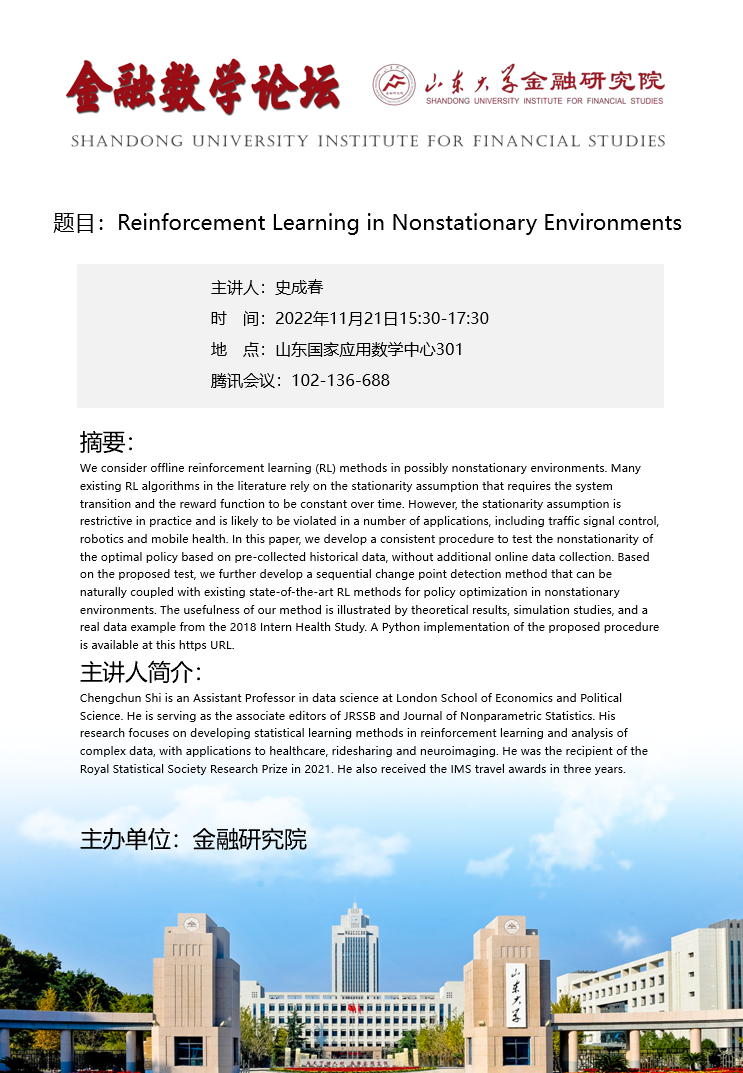 报告题目:Reinforcement Learning in Nonstationary Environments