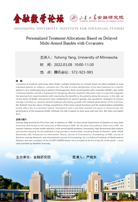 报告题目:Personalized Treatment Allocations Based on Delayed Multi-Armed Bandits with Covariates