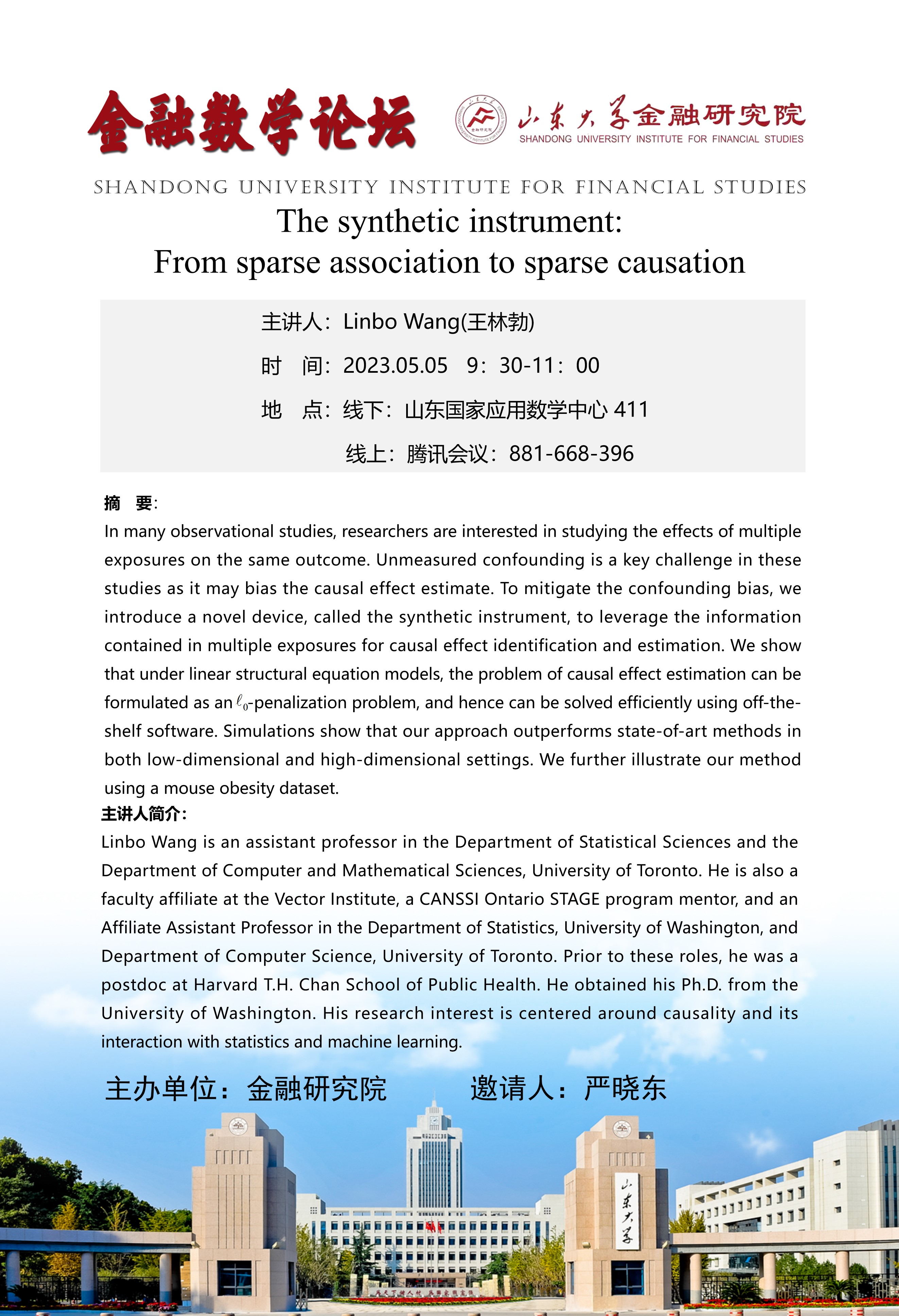 报告题目:The synthetic instrument:From sparse association to sparse causation
