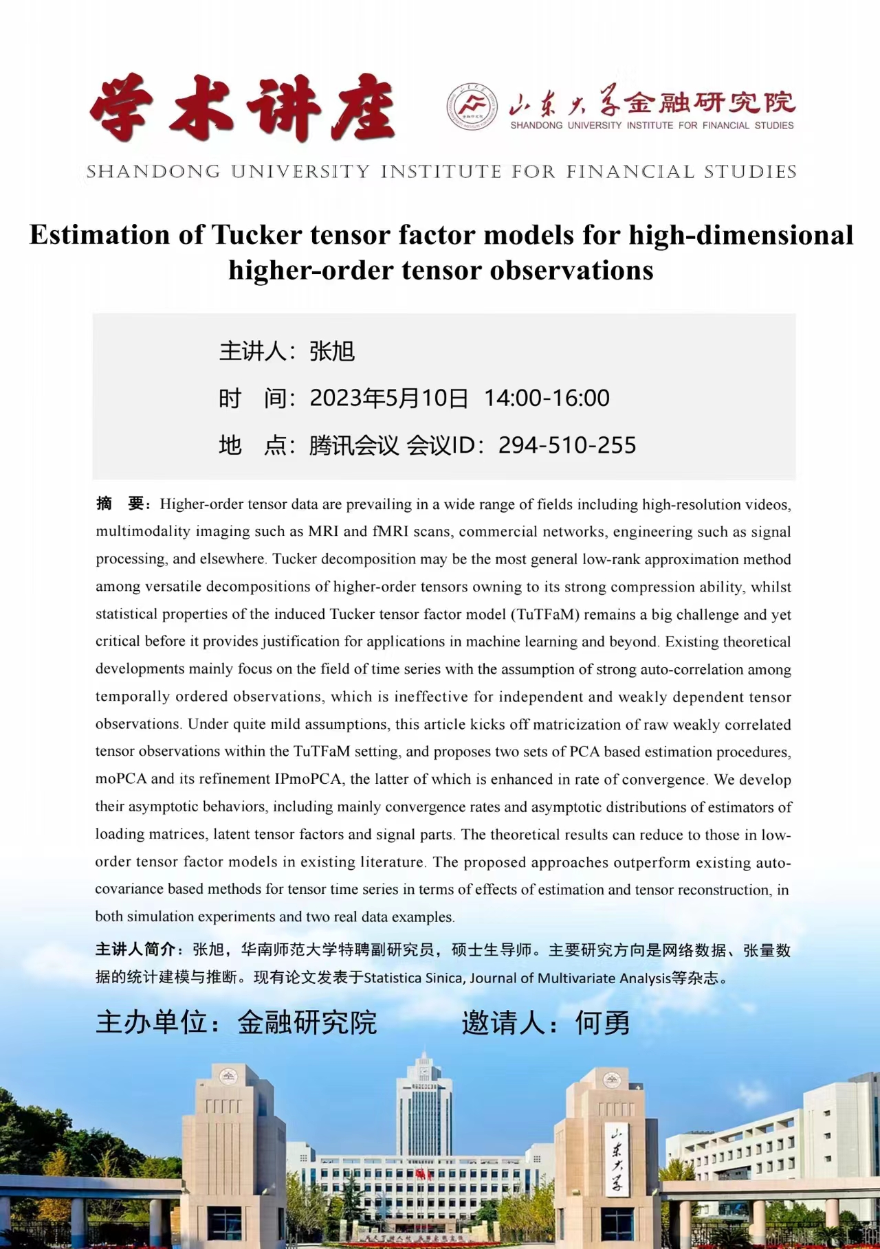 报告题目:Estimation of Tucker tensor factor models for high-dimensional higher-order tensor observations