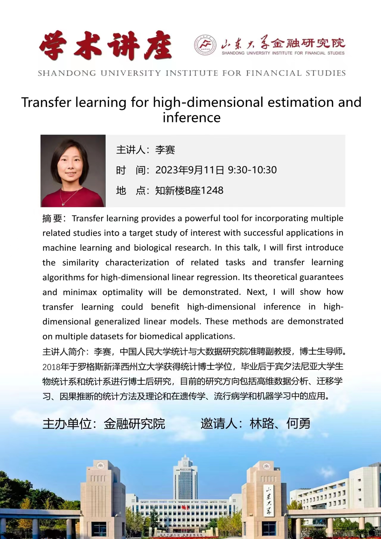 报告题目:Transfer learning for high-dimensional estimation and inference