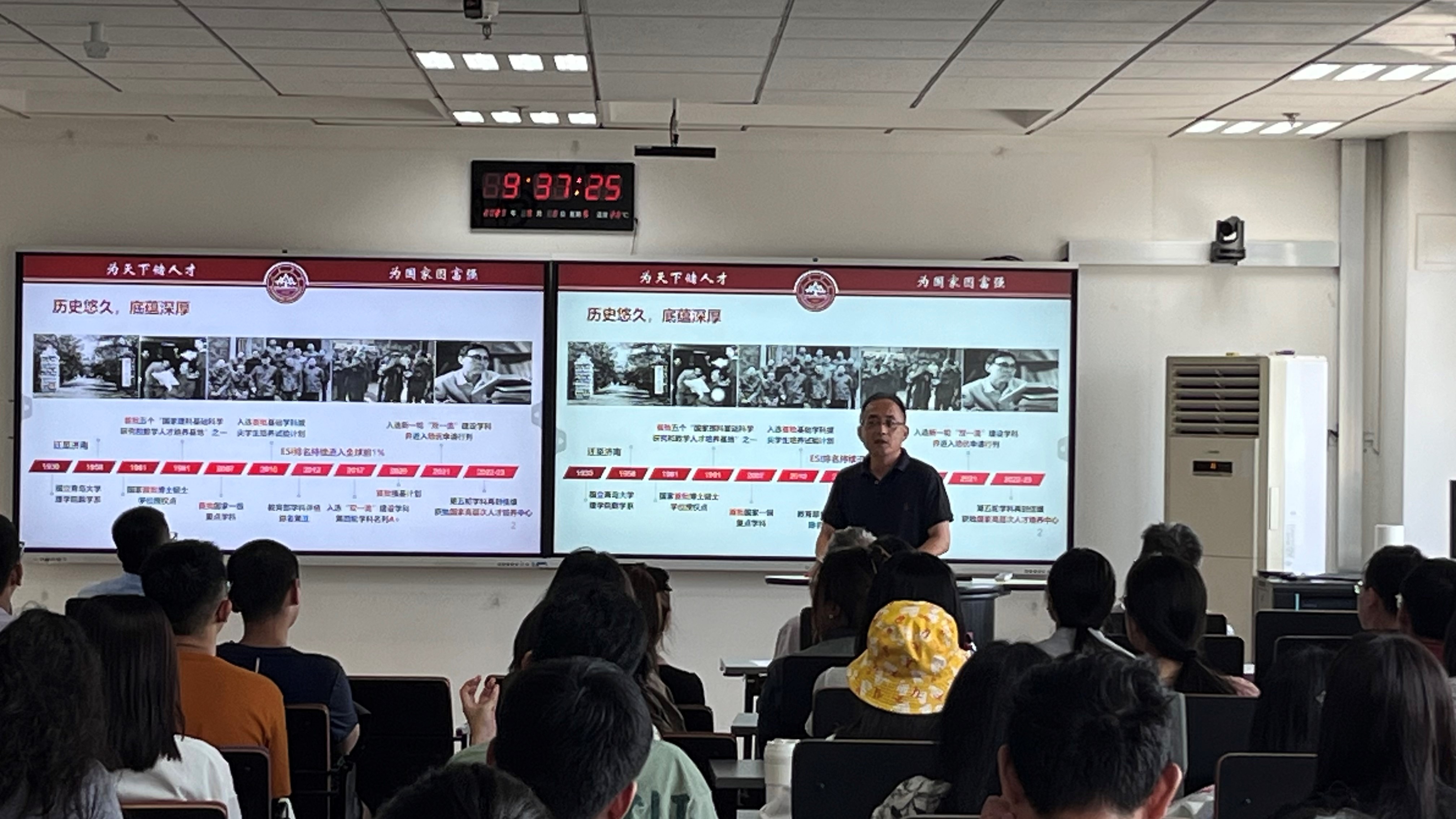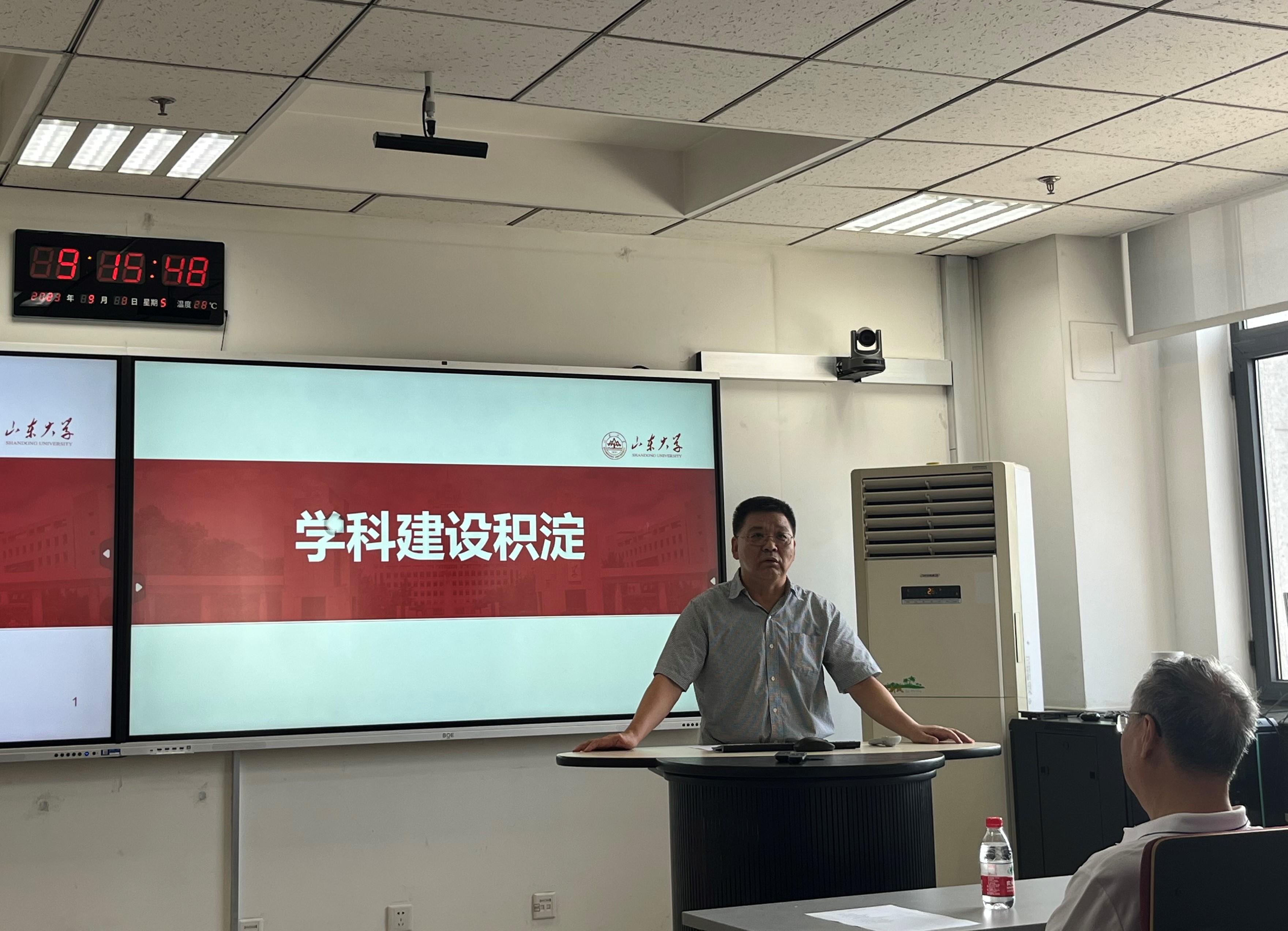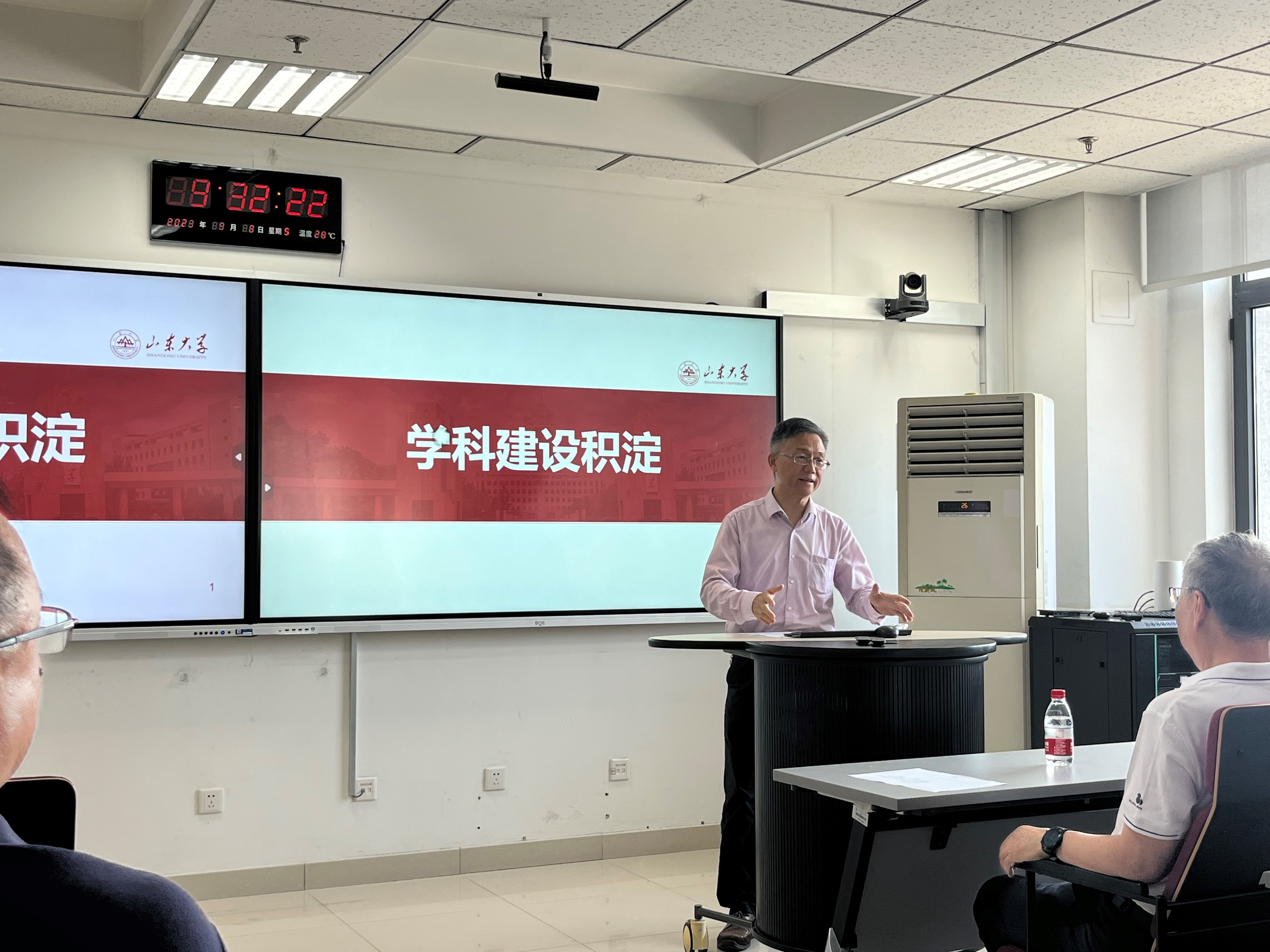 出席本次会议的诸位老师分别就各自分管的工作进行了详细介绍,并对2023级研究生新同学成为山大人表示热烈欢迎。嵇少林副院长对金融研究院师资力量、人才培养及专业方向设置等内容进行了具体介绍。王法磊副教授在讲话中呼吁新生踊跃加入山东大学国家应用数学中心,并介绍了应用数学中心的主要项目。接下来,王汉超教授、杨淑振副教授、吴盼玉教授和季加东老师依次上台,分别为新生介绍了量子随机数、山东大学与银行合作中所负责的项目、大数据等领域的项目以及数学在医学领域的应用。