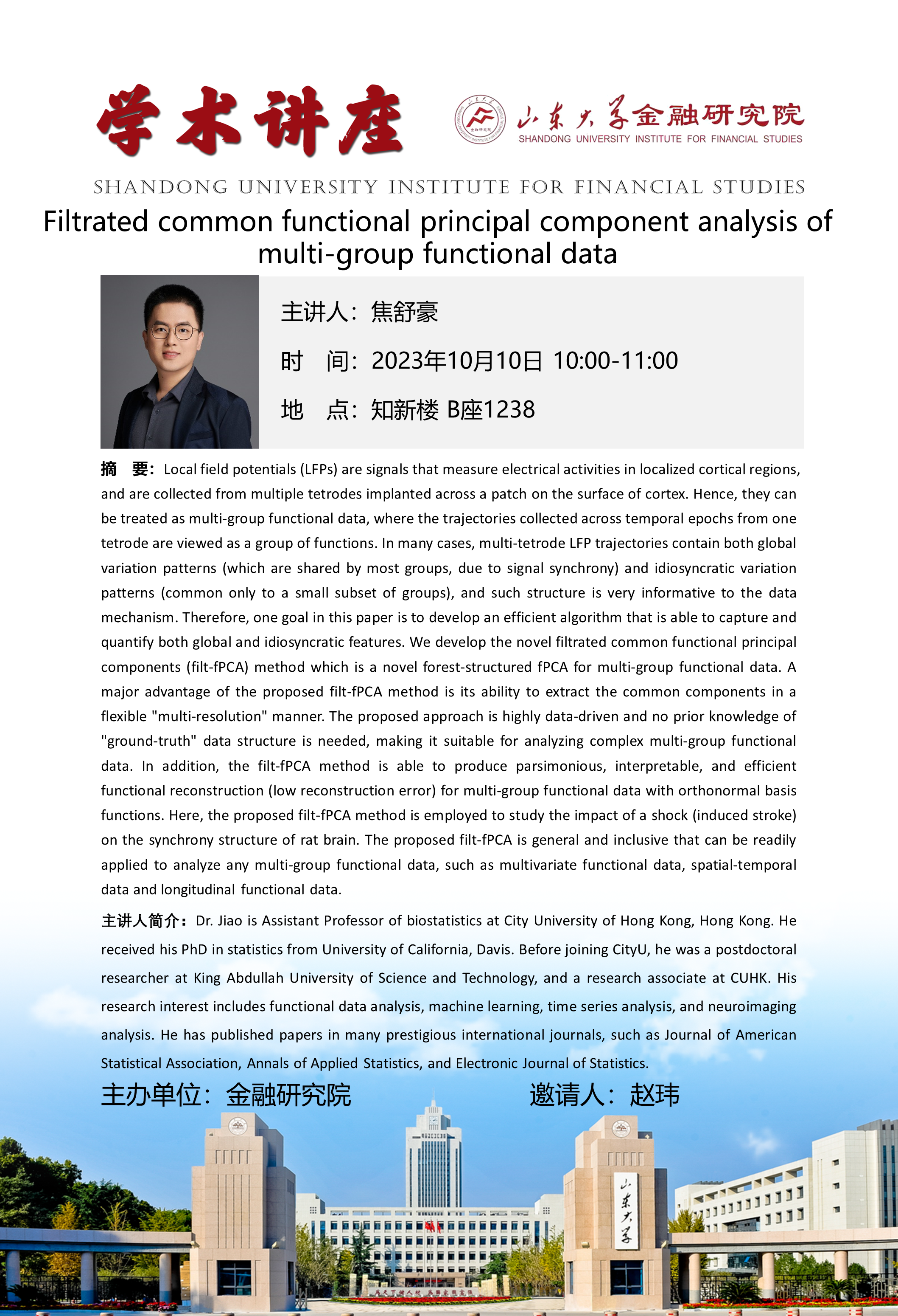 报告题目:Filtrated common functional principal component analysis of multi-group functional data