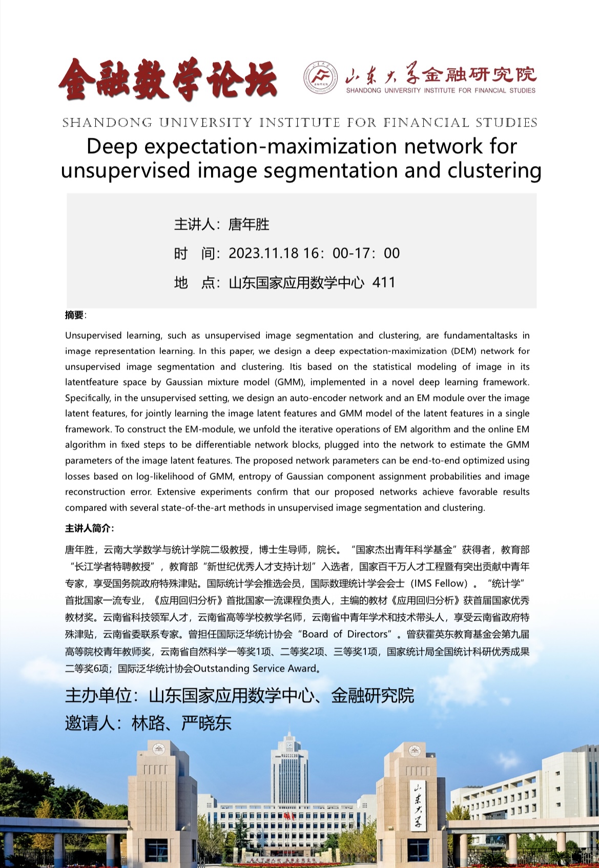 报告地点:山东国家应用数学中心 411