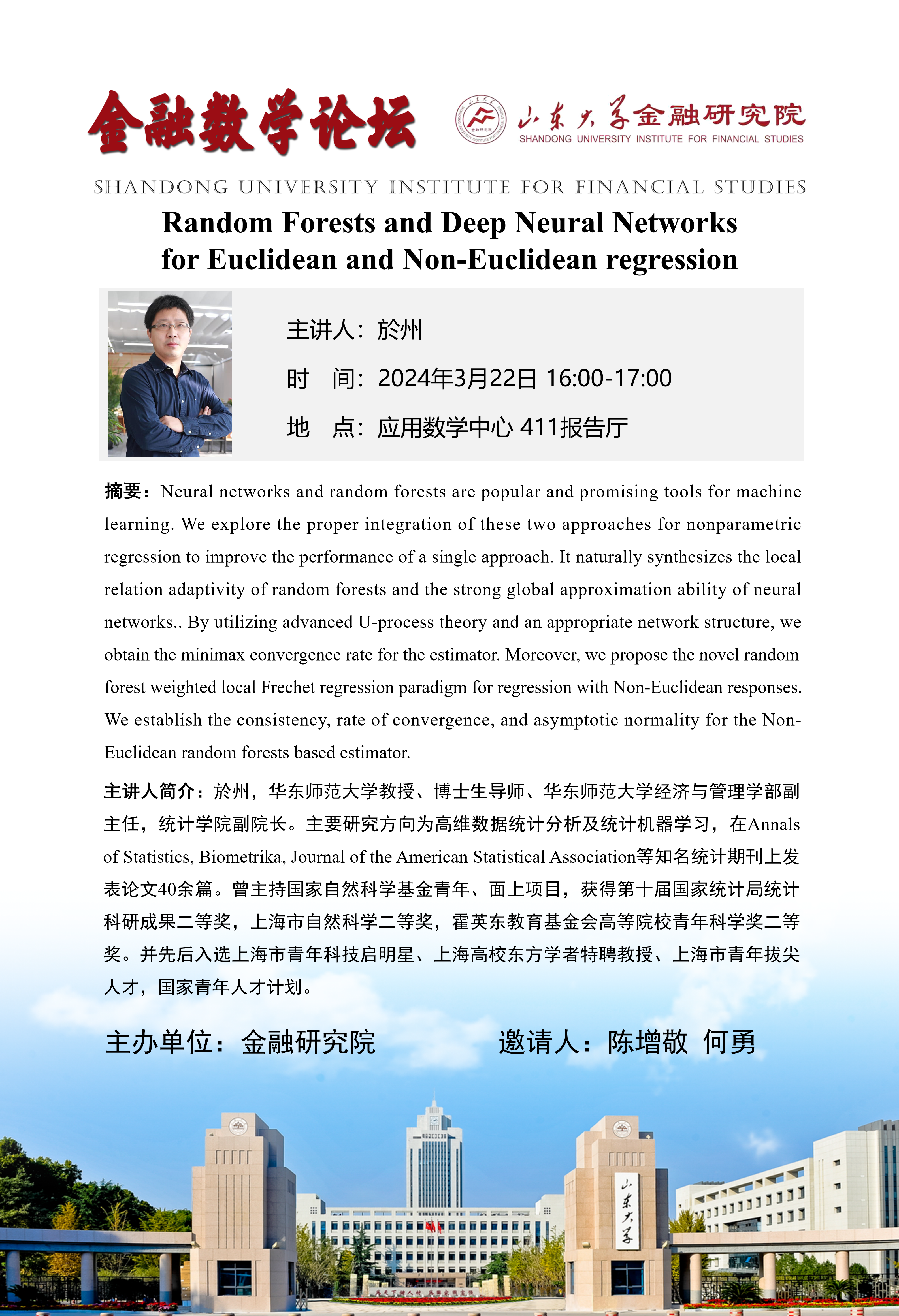 报告题目:Random Forests and Deep Neural Networks for Euclidean and Non-Euclidean regression