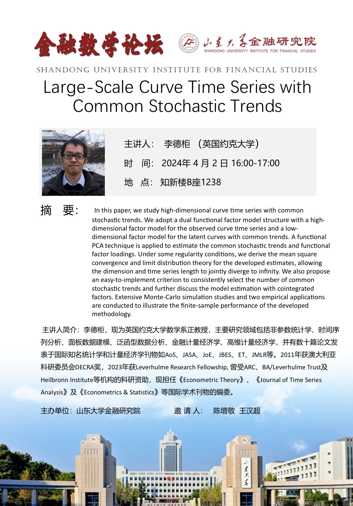 报告题目:Large-Scale Curve Time Series with Common Stochastic Trends