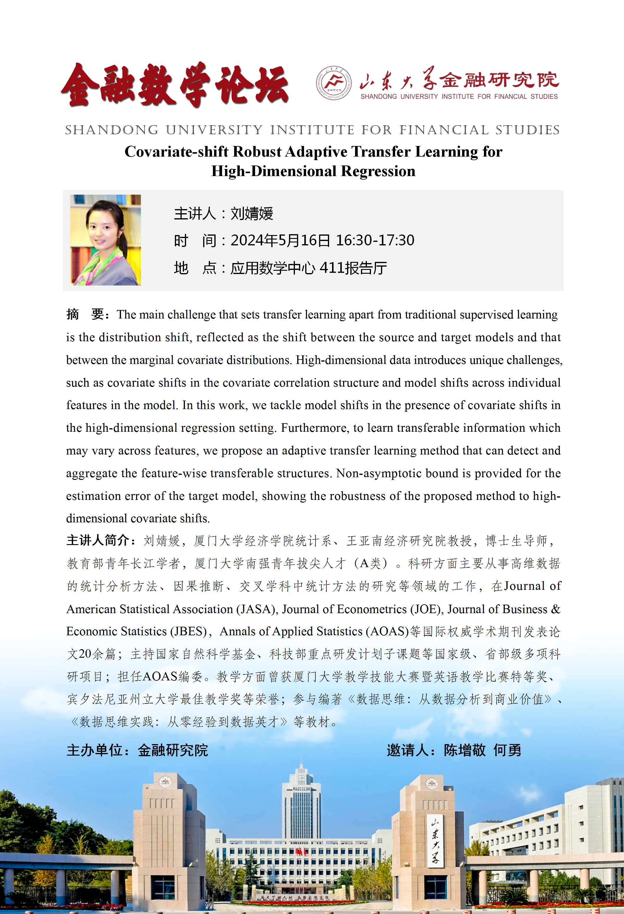 报告题目:Covariate-shift Robust Adaptive Transfer Learning for High-Dimensional Regression