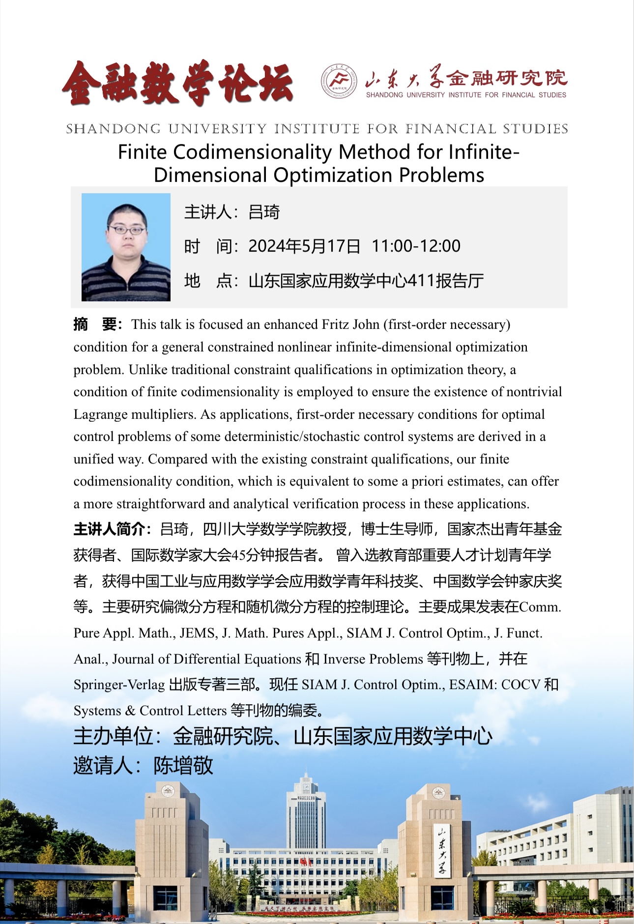 报告地点:山东国家应用数学中心411报告厅