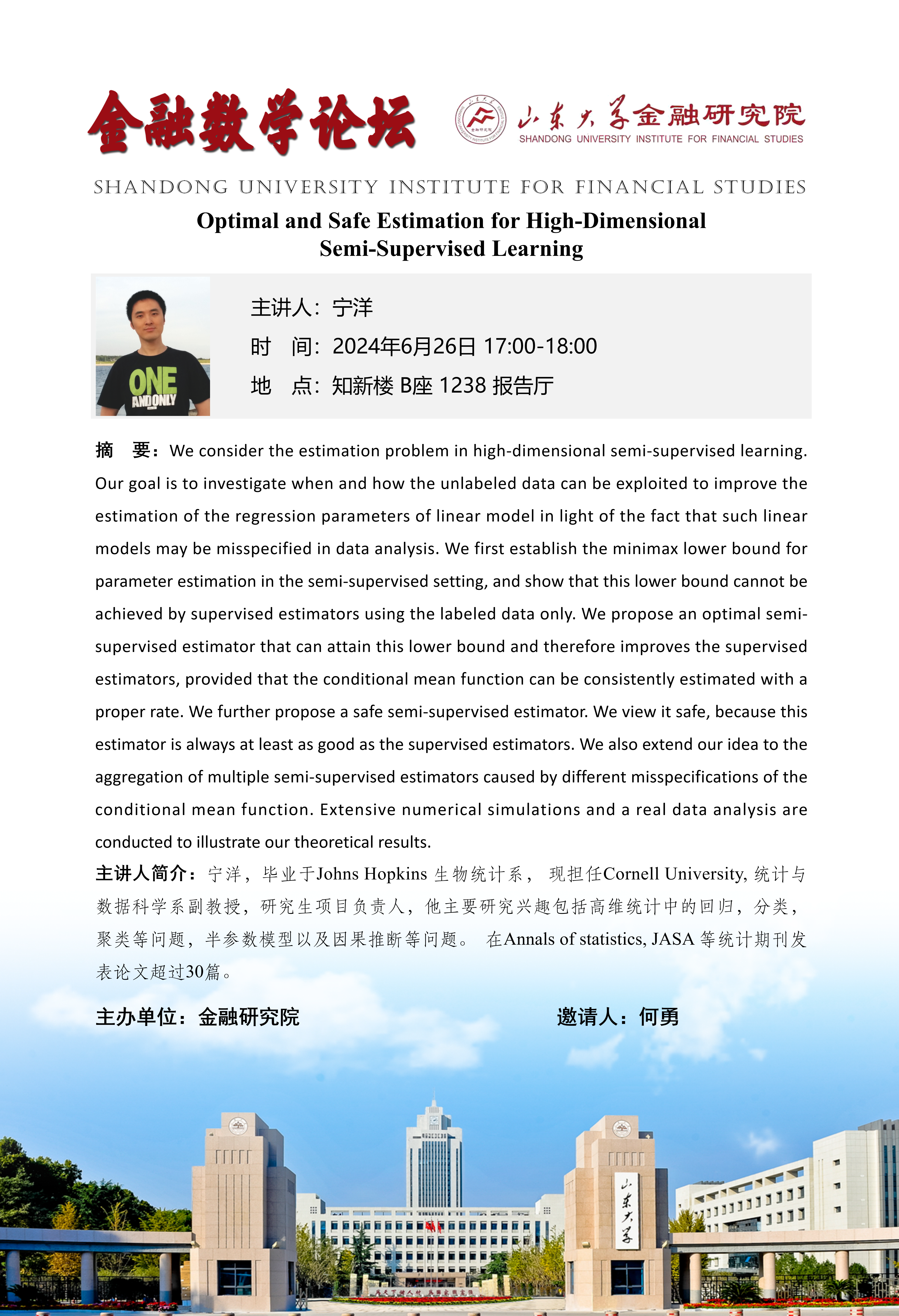 报告题目:Optimal and Safe Estimation for High-Dimensional Semi-Supervised Learning