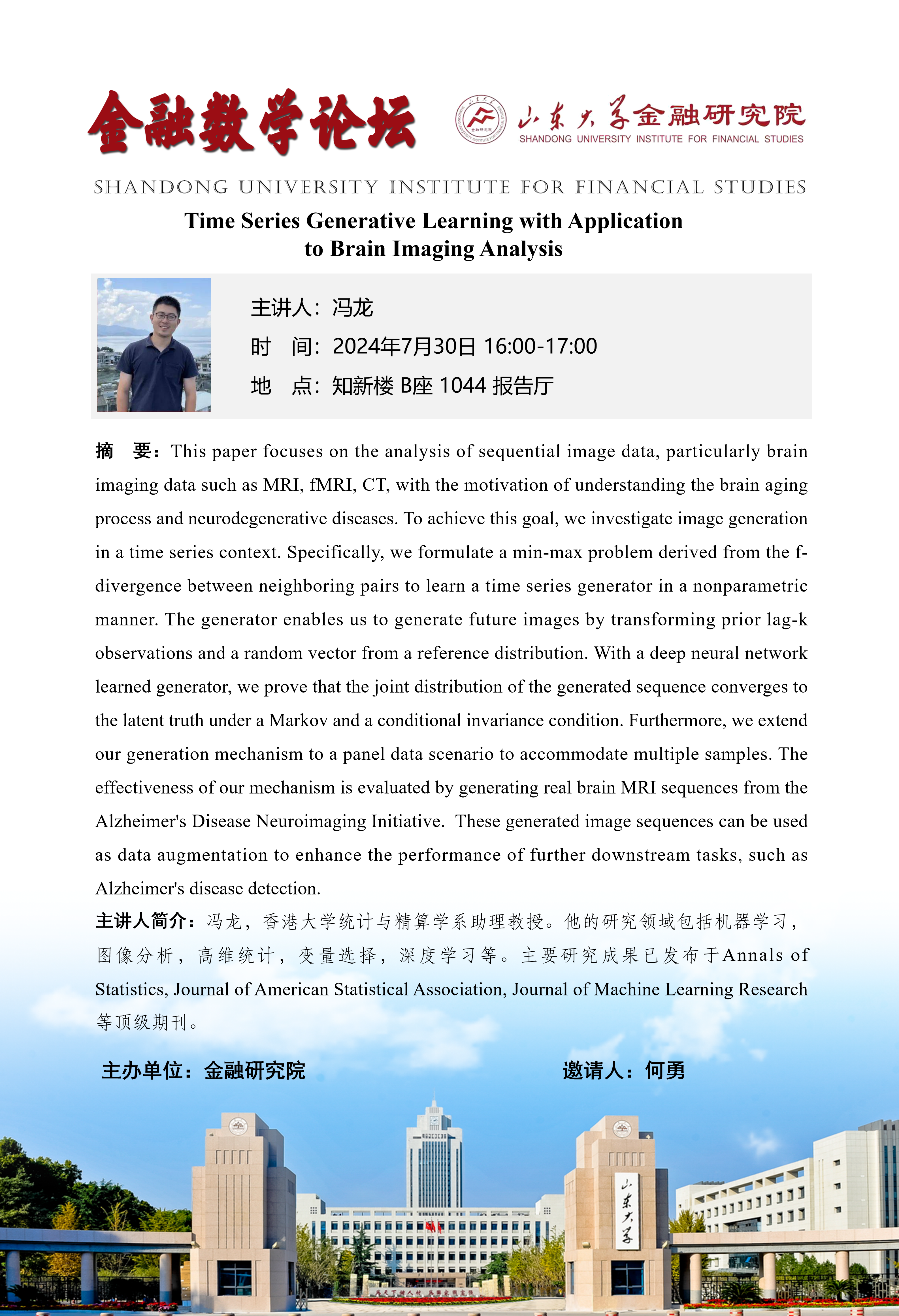 报告题目:Time Series Generative Learning with Application to Brain Imaging Analysis