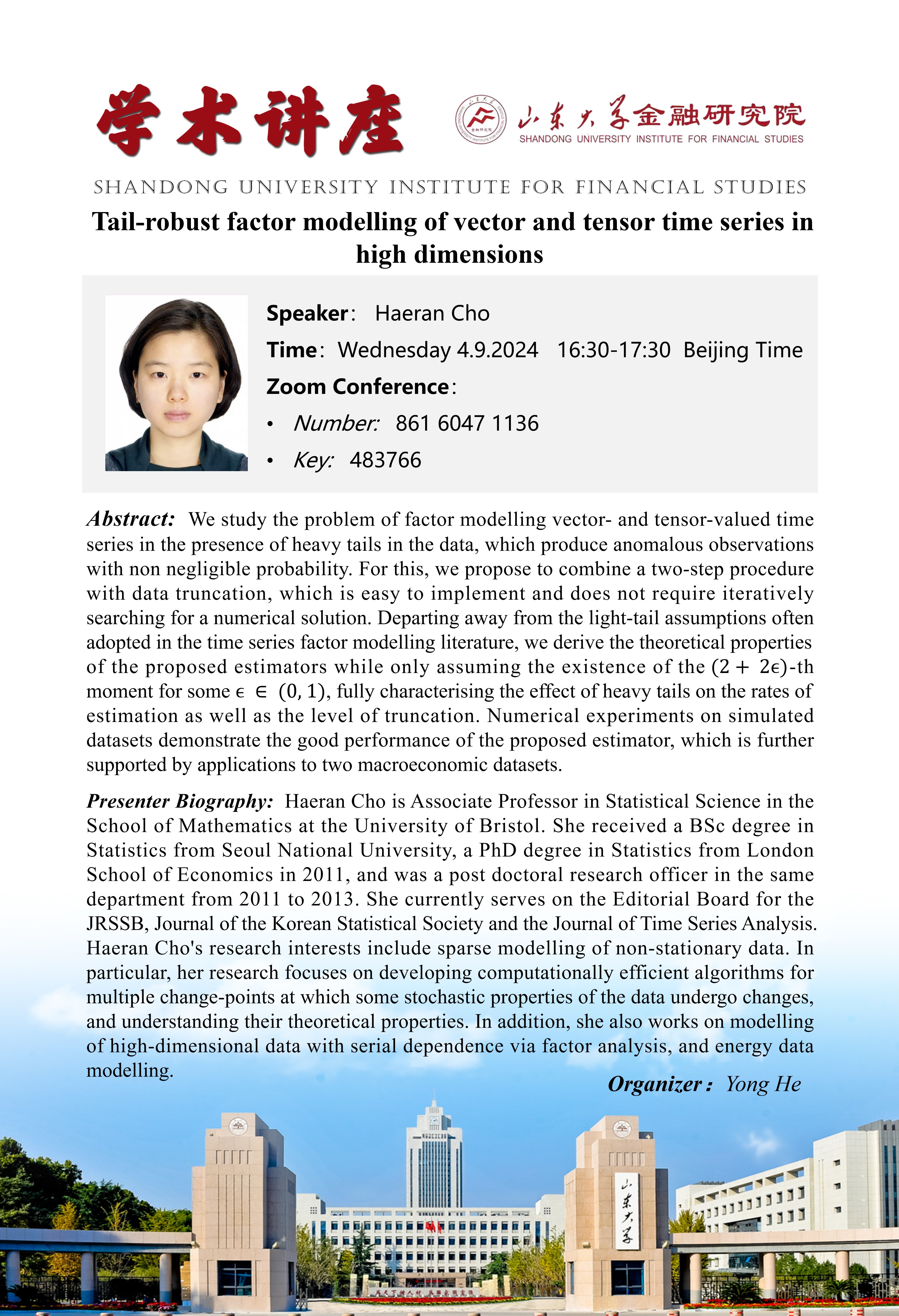 报告题目:Tail-robust factor modelling of vector and tensor time series in high dimensions