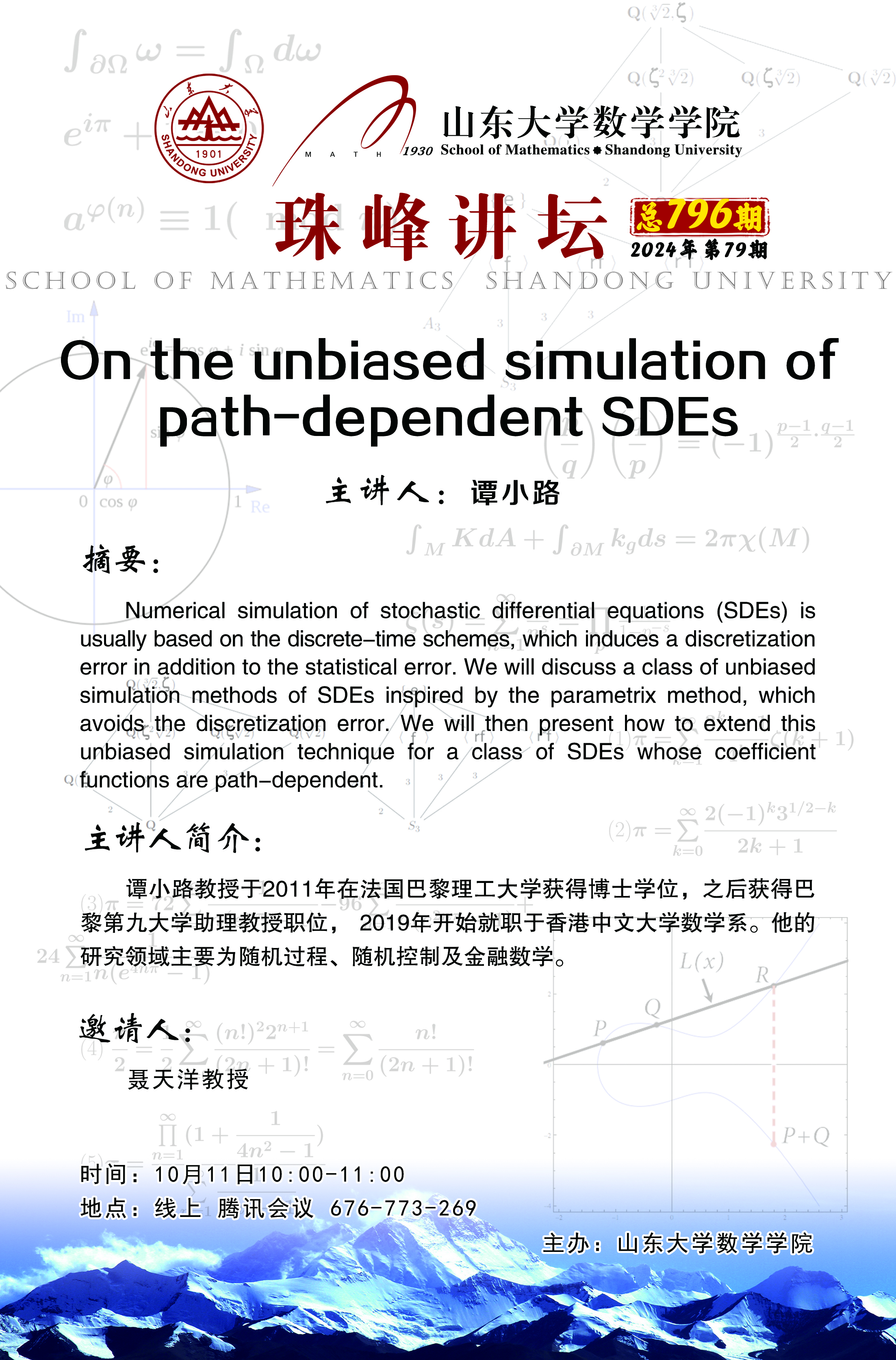 报告题目:On the unbiased simulation of path-dependent SDEs