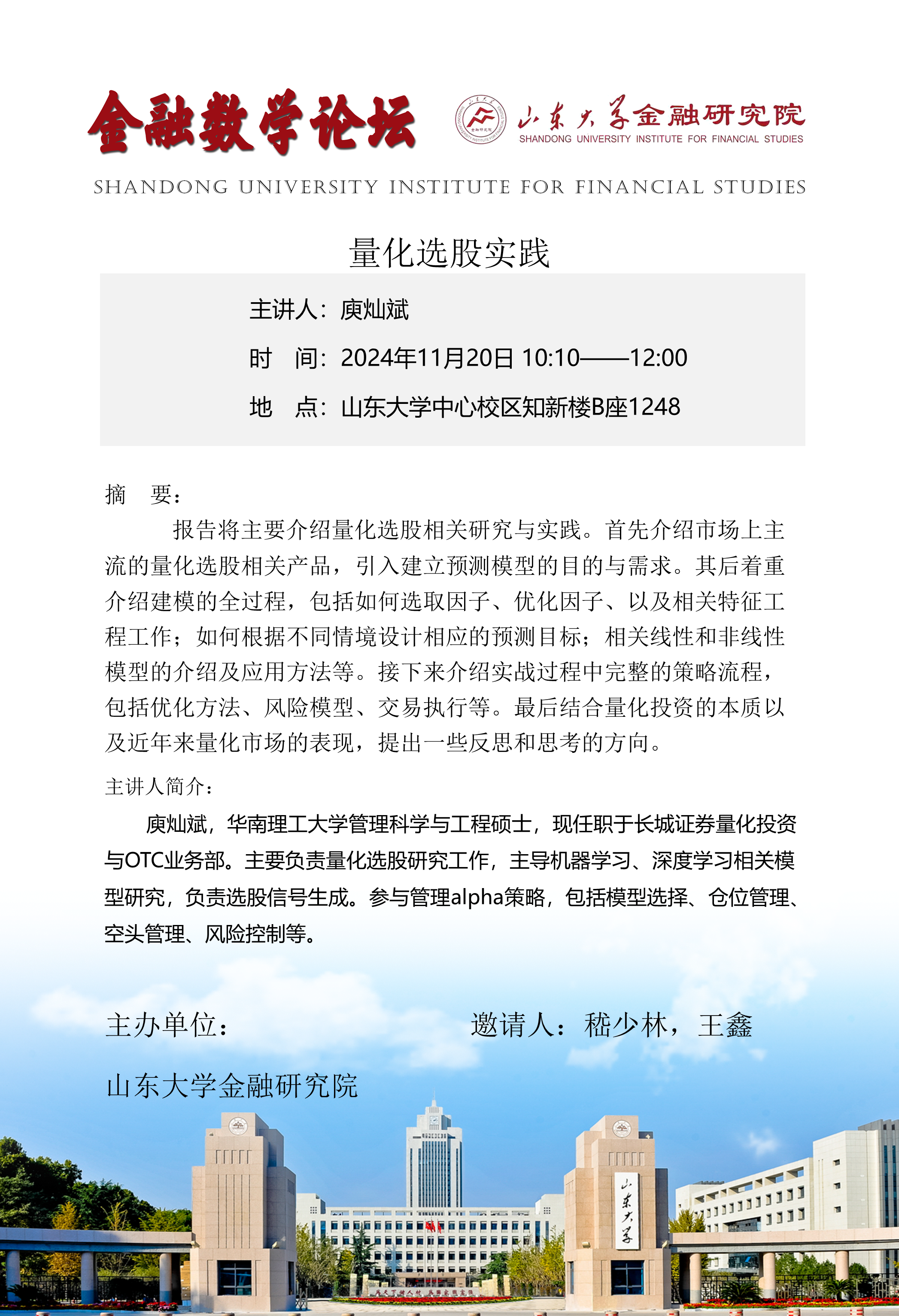地 点:山东大学中心校区知新楼B座1248
